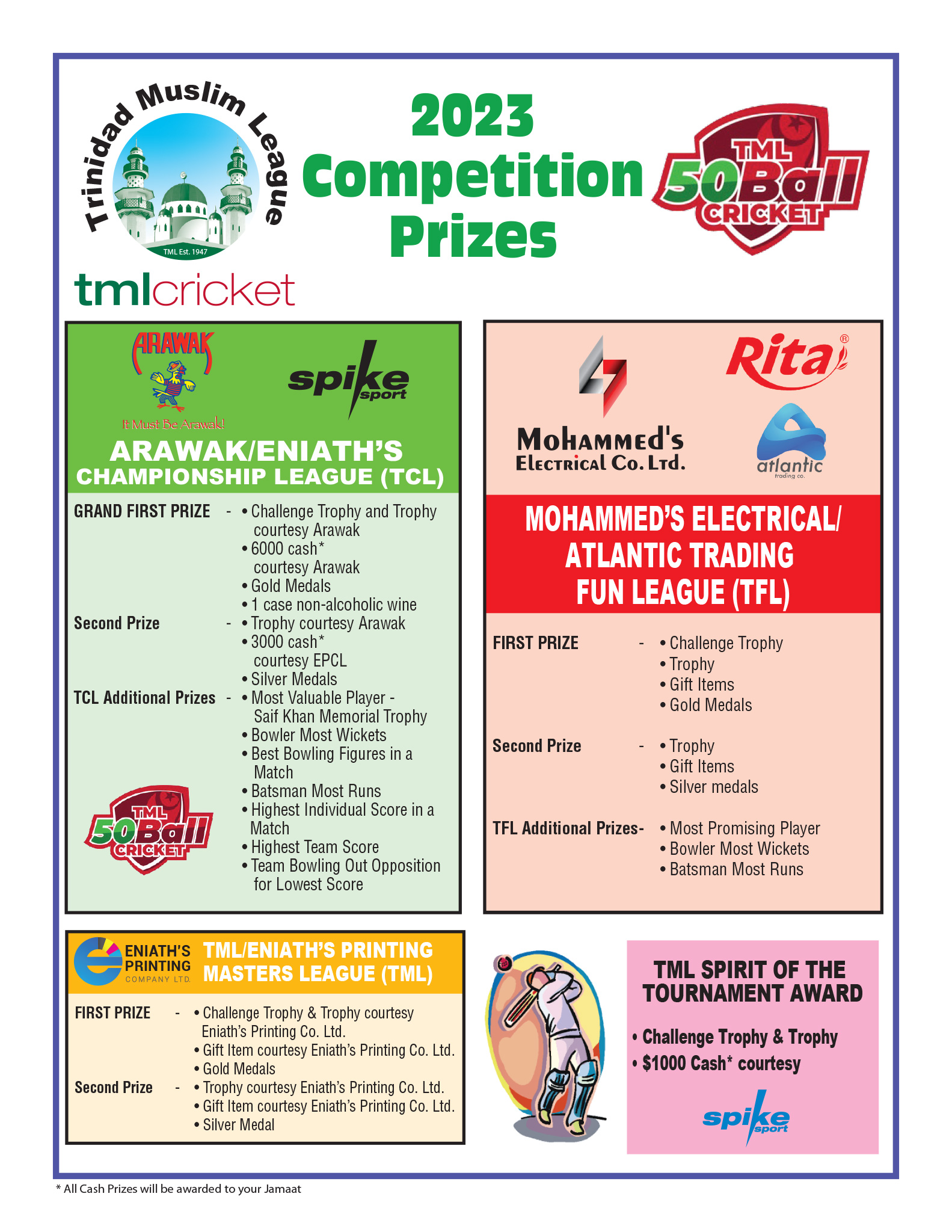 2023 TML Cricket Competition Prizes